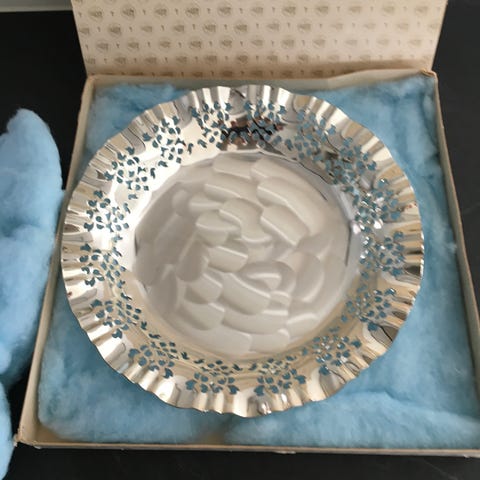 Nyt smukt forsølvet fad i original æske, Guldsmed Schmidt Kjergaard