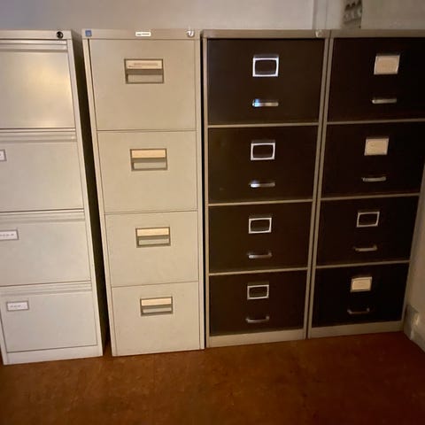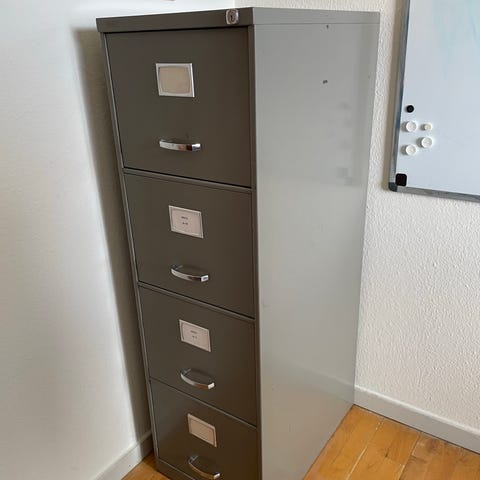 Grå metal arkivskab med skuffer, høj 56 dyb 40 bred 40