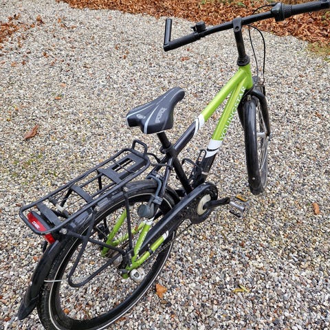 Youngstar børnecykel med 24 tommer hjul, i farverne grøn og sort. Cyklen har kædeskærm, skærme og justerbart sæde, designet til børn.