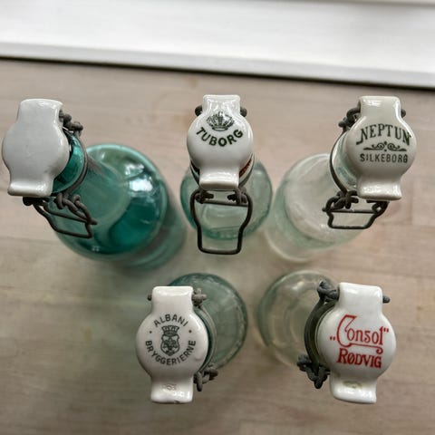 glassflaske, glassflasker, patentflaske, flaske med patentkork, bøyleflaske