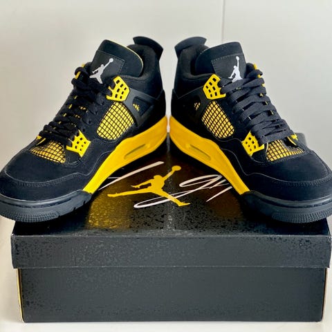 Har en dreng som køber masser af sko uden og bruge dem 😏 "Air Air Jordan 4-modellen sælges I størrelse 42.5 eller 27 cm og er en af de hotteste silhuetter lige nu. Og med god grund. Med denne Infrared colorway forstår man godt hvorfor: en kølig grå base med hvide og røde elementer giver det perfekte resultat. Sport dem med jeans for et stilet look. Ny pris var tæt på de 3K og nu sælger vi dem for 1000. De er brugte 3 - 4 gange