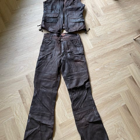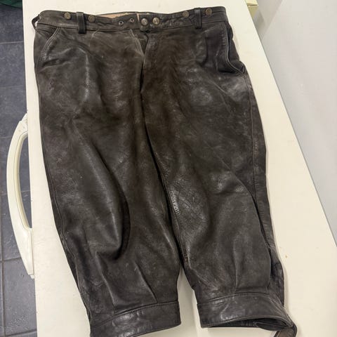 Nærmest ubrugt læder chaps til jægeren der skal gå igennem.