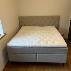 Lækker Viking Birka Kontinental dobbelt seng til salg med Viking Topmadras, samt Viking Gavl. Madrassen er halvt medium og halvt fast.
