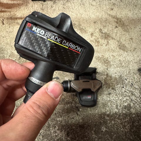 Look Racing pedaler til cykel i rød farve. Inkluderer tilbehør til montering og justering. Designet til cykling med fokus på ydeevne og sikkerhed.