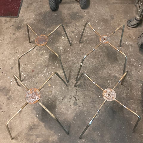7'er stoleben blevet i overskud efter knækket stoleryg. For gode til genbrugspladsen.