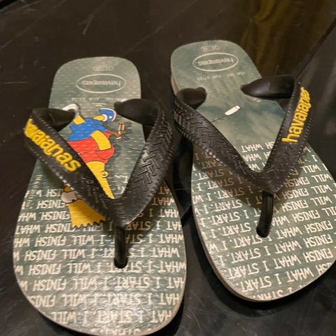 Ubrugte Simpsons hjemmesko med Homer Simpsons ansigt.