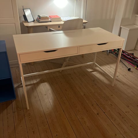 Helt nyt skrivebord med skuffer i røget eg, str. 140x75 cm. Bordet er fra IKEA og modellen hedder Tonstad. Bordet er desværre for stort til det værelse, hvor det var købt til.