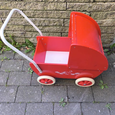 KREA dukkevogn / gåvogn - Den lille røde. Pæn og velholdt men lidt skrammer på den øverste kant - se foto.