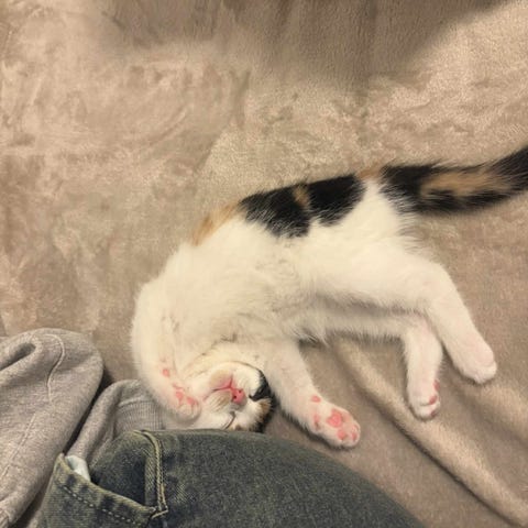 Der medfølger en royal Canin killingepakke og lidt legetøj.
