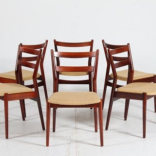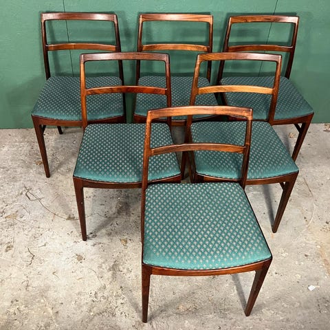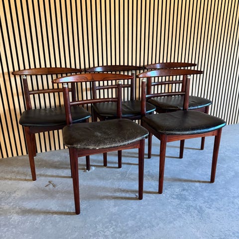 6 spisebordstole i palisander designet af Arne vodder for Helge Sibast, 4 uden armlæn 2 med armlæn. Sælges samlet.