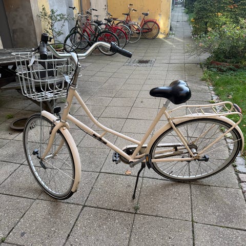 Cykel med 3 gear og kurv, hvor alt på den virker som det skal. Cyklen er i str. 54