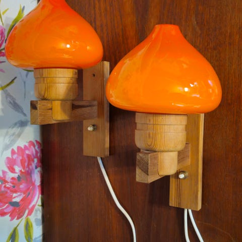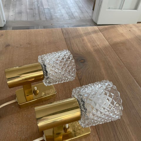 VÆGLAMPER | RAVFARVET GLAS & MESSING | DANSK DESIGN | 1970’ERNE 🟡 SELECT