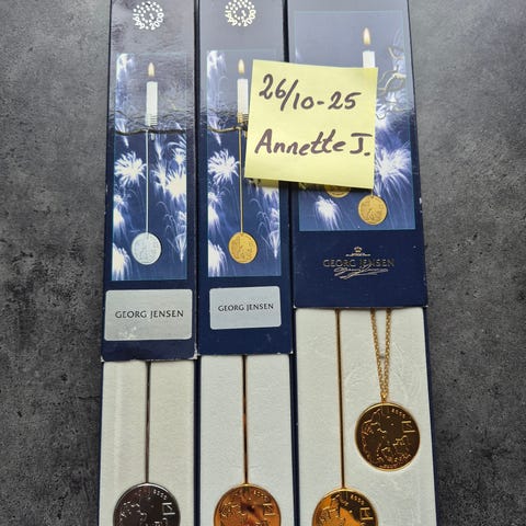 Georg jensen guldbelagte lysholdere Millennium fra 2000, kugle, nisse fra 2006 og hasselnød fra 2002