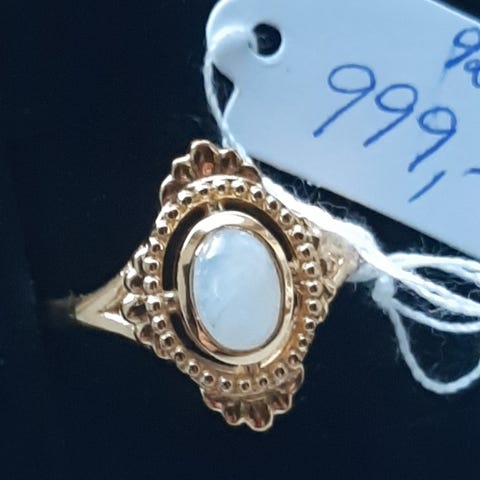 Smuk, feminin og elegant ring udført i Sterlingsølv med 18 karat forgyldning prydet med en stor smuk blå Calcedon samt prydet med smukke detaljer.