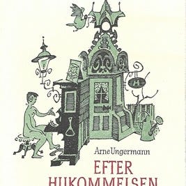 Arne Ungermanns bog "Efter Øjemål". En billedbog med tegninger i sort og farver. Udgivet 1952 i anledning af tegnerens 50 års fødselsdag. Bogen er i paperback og er lidt slidt men ikke revet itu.
