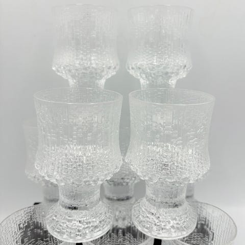 11 store ølglas fra finske Iittala - “Ultima Thule”. Højde 15 cm, indeholder 34 cl - alle i fin stand ! Pris pr stk 100 kr.