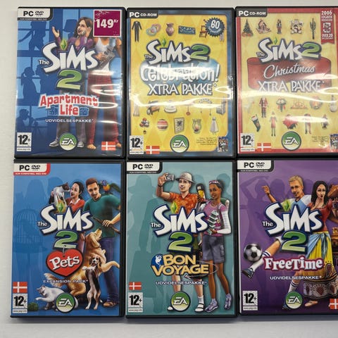The Sims 2 PC spil samling indeholder flere udvidelsespakker såsom Family Fun Xtra Package, Seasons, Apartment Life og Pets. Spillene er designet til PC og tilbyder forskellige temaer og funktioner til simulation af livssituationer.