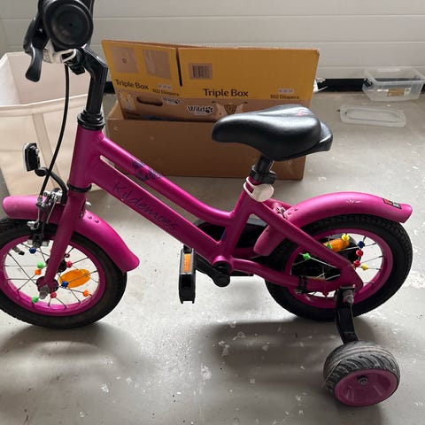 X-Zite pigecykel med 12 tommer hjul brugt ganske lidt. Cyklen har en pink og hvid farve og er udstyret med støttehjul samt en Frost kurv foran med motiv. Velegnet til børn. Cyklen er udstyret med 12" Alu fælge med reflekser i hjul - Lukket kæde kasse - Alm fod bremse bag - Hånd bremse for - 1 Gear - reflekser i hjul - Håndtag med knobber for enden så barnets hånd ikke glider af styret. Nu serviceret og velkørende med kvittering. Pris 350 kr