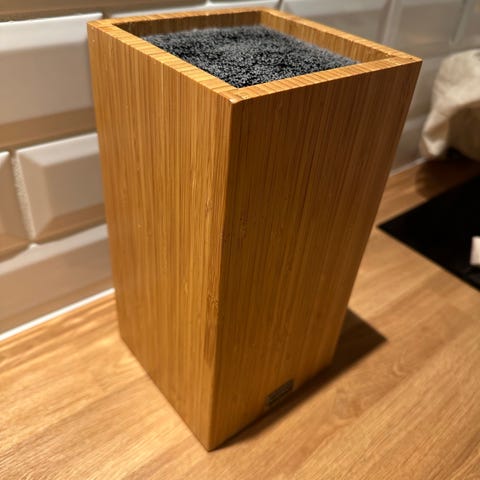 WMF knivblok fremstillet i bambus. Designet til opbevaring af forskellige knive og køkkenredskaber. Blokken har flere rum til at organisere knive sikkert og praktisk i køkkenet. 24 cm høj 18 cm dyb 11 cm bred