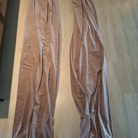 Abraur Gardin i farven sand, brugt ca. 1 år, fra røgfrit hjem, har 4 stk til salg, prisen er for alle 4 gardiner (Nypris i alt ca. 900 kr), vægbeslag og stænger (savet til) medfølger