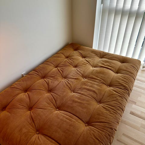 Sofa er i pænere stand, og er ikke udsat for dyr eller røg. Men en rens kunne den godt trænge til og nyt velcro. Prissat derefter.