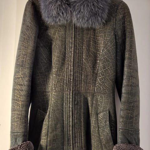Smuk frakke fra italienske Herno. Er købt i Harrods for nogle år siden, men har kun været brugt et par gange. Har aftagelig pelskrave og revers. Smuk A-form der er meget feminin. Fyldet er dun.
