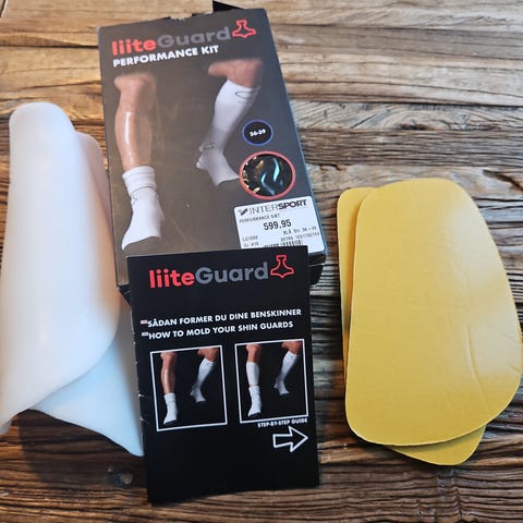 Helt nye LiiteGuard formbare benskinner med sleeves. Str S. Farve hvid. Nypris 300