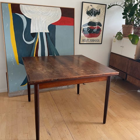 A classic mid-century table with generous dining and working space