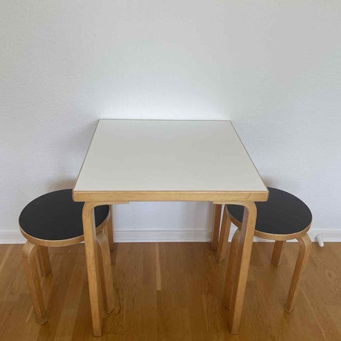 Smukt og sjældent Alvar Aalto spisebord bestående af 2 halvmåne-formede borde.