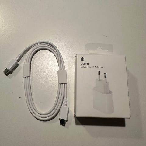 Ny og uåbnet Apple USB-C oplader med 20W effekt. Designet til at levere hurtig opladning til kompatible enheder via USB-C port.