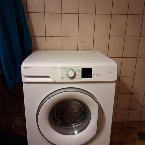 Gram Frontbetjent vaskemaskine med frontbetjent design. Maskinen er hvid og egnet til almindelig husholdningsvask. Købt marts 2025. Sælges grundet flytning