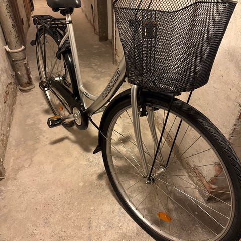 Bemærk at den er stor, 99cm til sadlen når den er i bund.