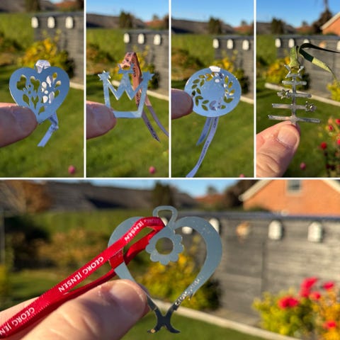 Georg Jensen gavemærker i palladium i form af juletræer.