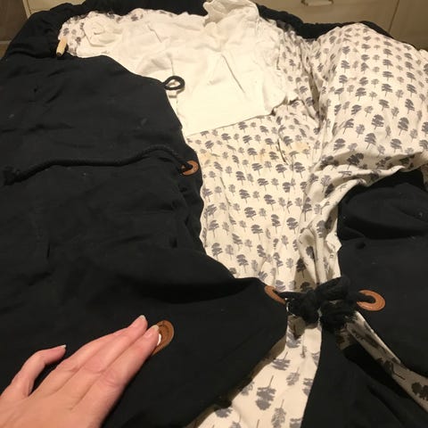 Begge poser er fremstillet af 100% bomuld og vinterdynen af uld. De er i god stand og sælges udelukkende fordi vores datter desværre er blevet for stor til at kunne være i dem længere.