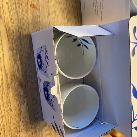 Royal Copenhagen blå mega riflet krus, 4 stk. 36 cl, samt to fyrfadsstager. Helt nye, kun pakket op for at tage billeder. Fået som gave, men sælges da det ikke er min stil.