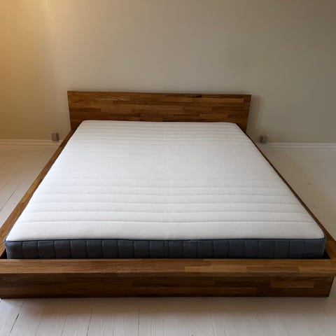 Sælger denne unikke, snedkerlavede murphy bed / skabsseng, lavet i sortbejdset røget eg med smukt sildebensmønster.
