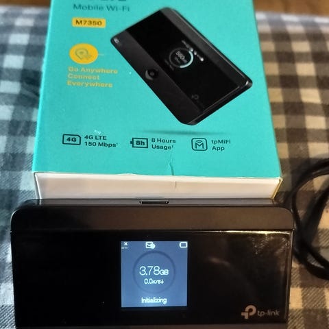 TP-Link 3G/4G Modem i sort farve med bærbar design. Enheden understøtter mobil netværkstilslutning og har en kompakt størrelse, egnet til trådløs internetadgang.