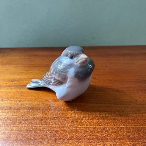 Royal Copenhagen gråspurv optimisten. med brun og grå farvetone.