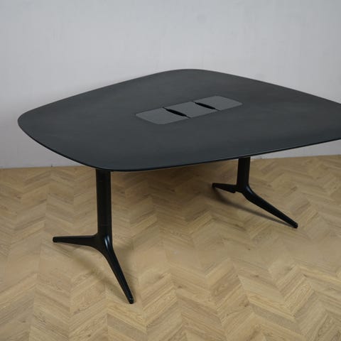 Konferencebord med grå laminatbordplade og sort stel 200 x 100 cm