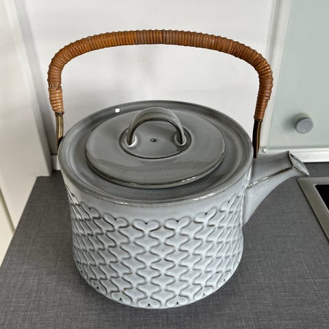 En lille, dekorativ te-kande, som både kan bruges og stå fremme som pynt.