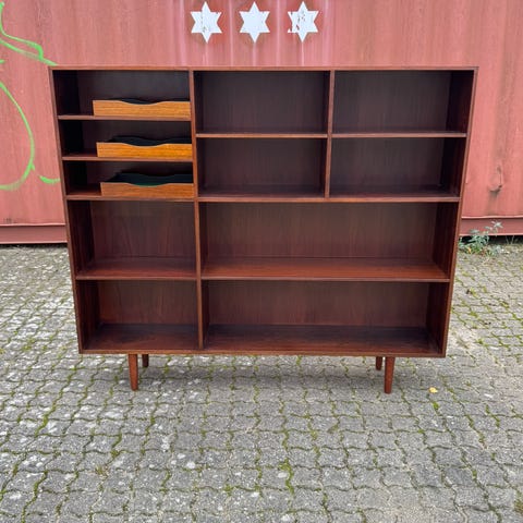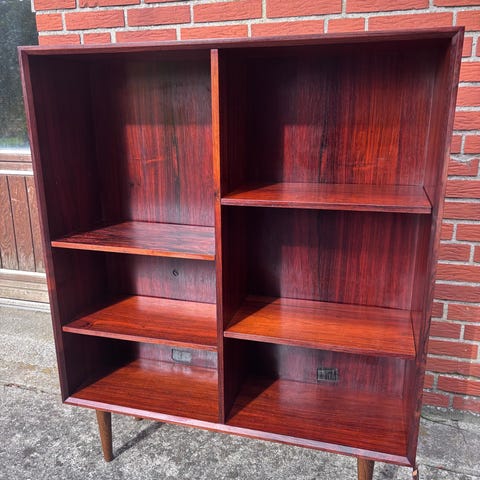 2 stk utroligt søde små åbne reoler / sengeborde / LP reoler / bogreoler i palisander. Fremstillet på Dansk møbelfabrik i 1970erne.