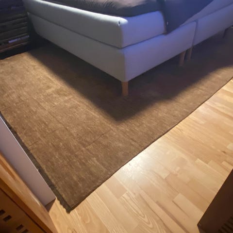 Tæppet er 2 år gammelt, men har ligget sammenrullet de sidste 6 måneder, da jeg har købt et mindre.