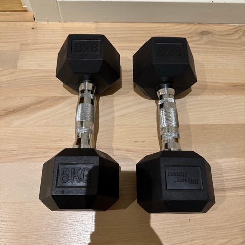 Sæt med håndvægte. Har aldrig været brugt. Fra ikkeryger-hjem.