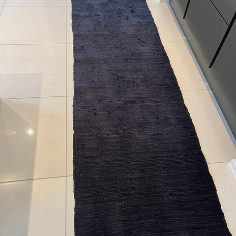 Dejligt stort bomuldstæppe i "Heeringbone" mønster. Lysegrønt med hvide frynser. Måler ca. 200 x 260 cm. Har kun været brugt en enkelt gang, så fin stand.