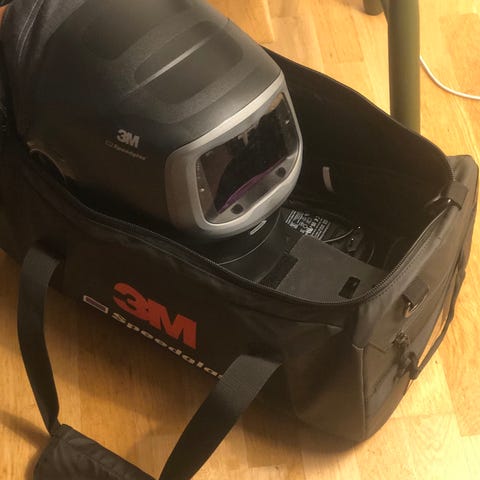 Commander robust sandblæsningshjelm slag af bisonyl. Inklusive slange, luftregulator, bælte, sikkerhedindikator og lyddæmper. Denne model en den fortrukne sandblæsningsudstyr som med Hjelmen er fremstillet af glasfiber forstærket med polyester og belagt med blåt gummi.Denne hjelm kan monteres med North Vortex klimakontrol. Har en høj beskyttelsesfaktor og komfortabelt overtryk. Har luftindtag i nakken så luften kommer ind over hovedet og ned foran ansigtet. Flowindikator viser om der kommer tilstrækkelig luft ind i hjelmen. Stålgitteret og dækglasset beskytter hovedvisiret og kan nemt udskiftes mens hjelmen bæres. Udskiftelig halslinning af bomuld sikrer ekstra høj beskyttelse. Slidstærk kappe af bisonol gummi beskytter ryg, bryst og skuldre (kappe fås også i læder eller lærred). Koncentreret udsyn. Leveres komplet med bælte med reguleringsventil og mellemslange