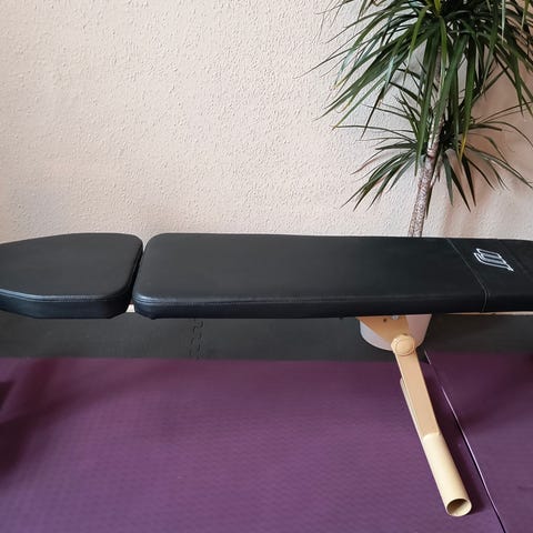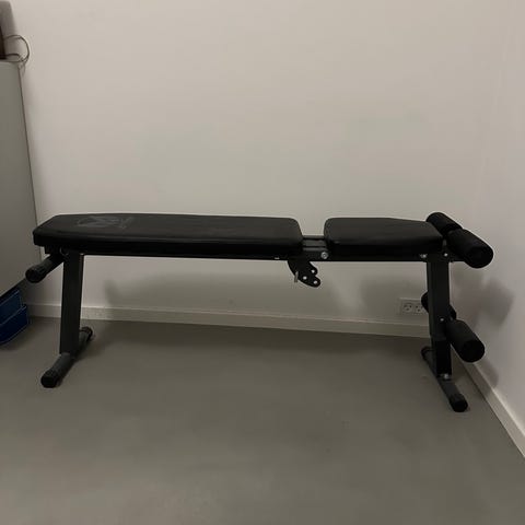 En super smart træningsbænk til hjemmetræning. Kan nemt foldes sammen, så den fylder minimalt og kan gemmes væk.