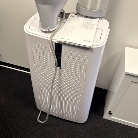 DeWett elektronisk affugter i hvid farve. Enhed designet til at reducere fugt i mindre rum. Har en brugervenlig betjeningsknap på forsiden og luftindtag på toppen. Strømkabel tilsluttet for elektrisk drift.