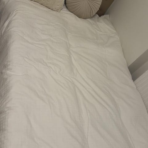 Brugt 1-mands seng sælges inkl. madras og topmadras, begge i fin stand. Sengen har brugsspor, og én skuffe har et tydeligt mærke (se billeder).