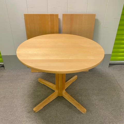 Diameter 115 cm, udtræk og ekstra plade indbygget på 40 cm.