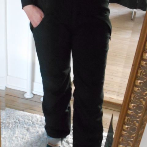 Næsten helt nye skibukser. Med aftagelige seler, mulighed for justering i talje samt lynlås og velcro ved anklerne. Åndbare, Vind og vandtætte. 10000 mm.